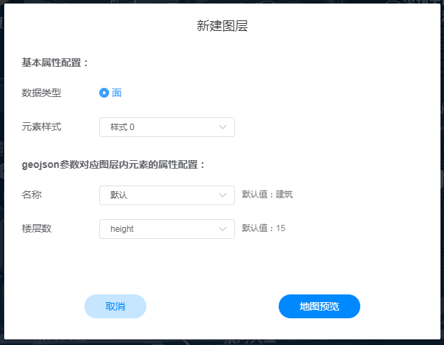 您现在的位置: 首页 >文档中心 > 在线城市三维场景编辑器 > GeoJson数据导入-Arcgis软件的.shp数据导入