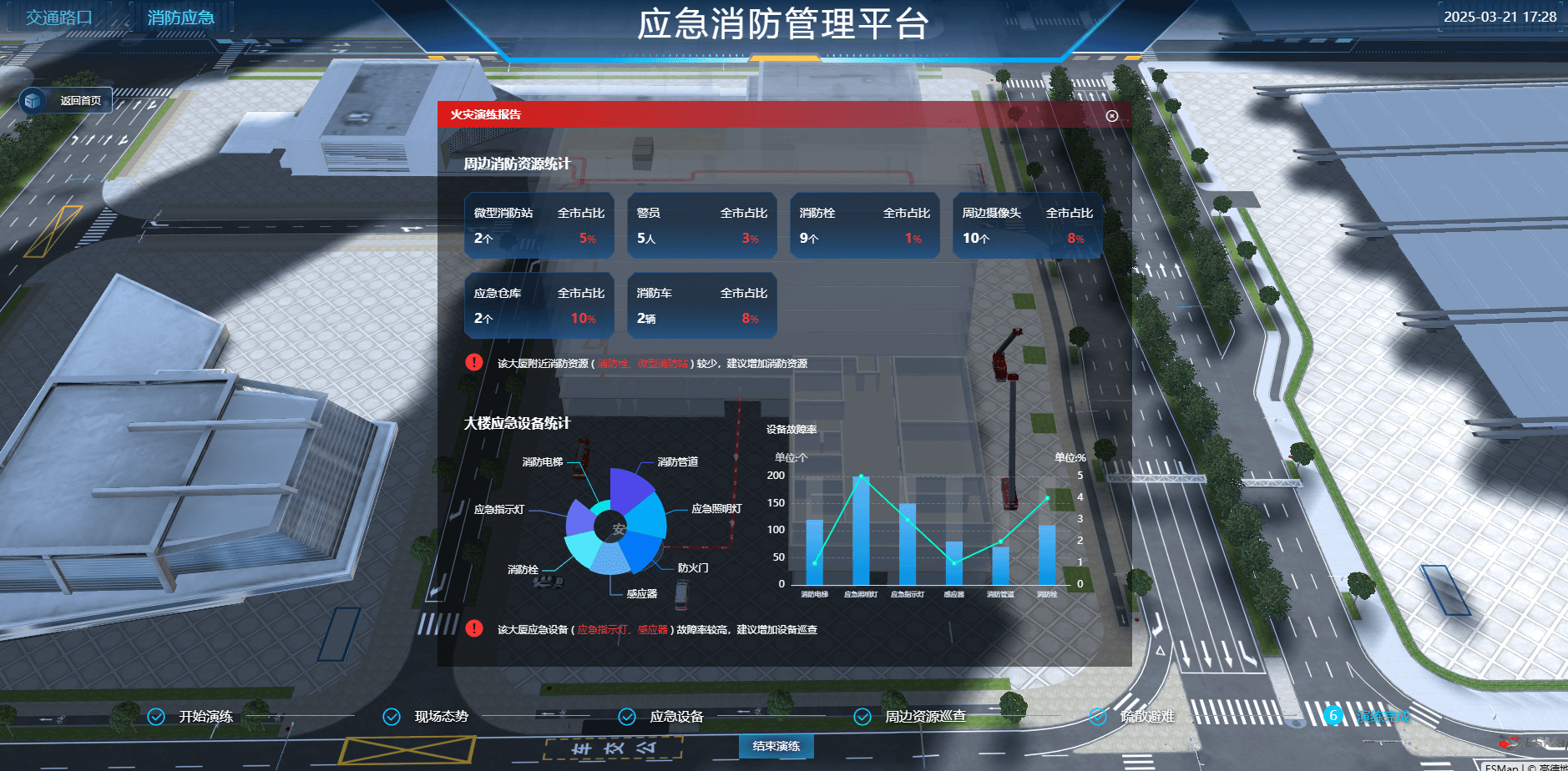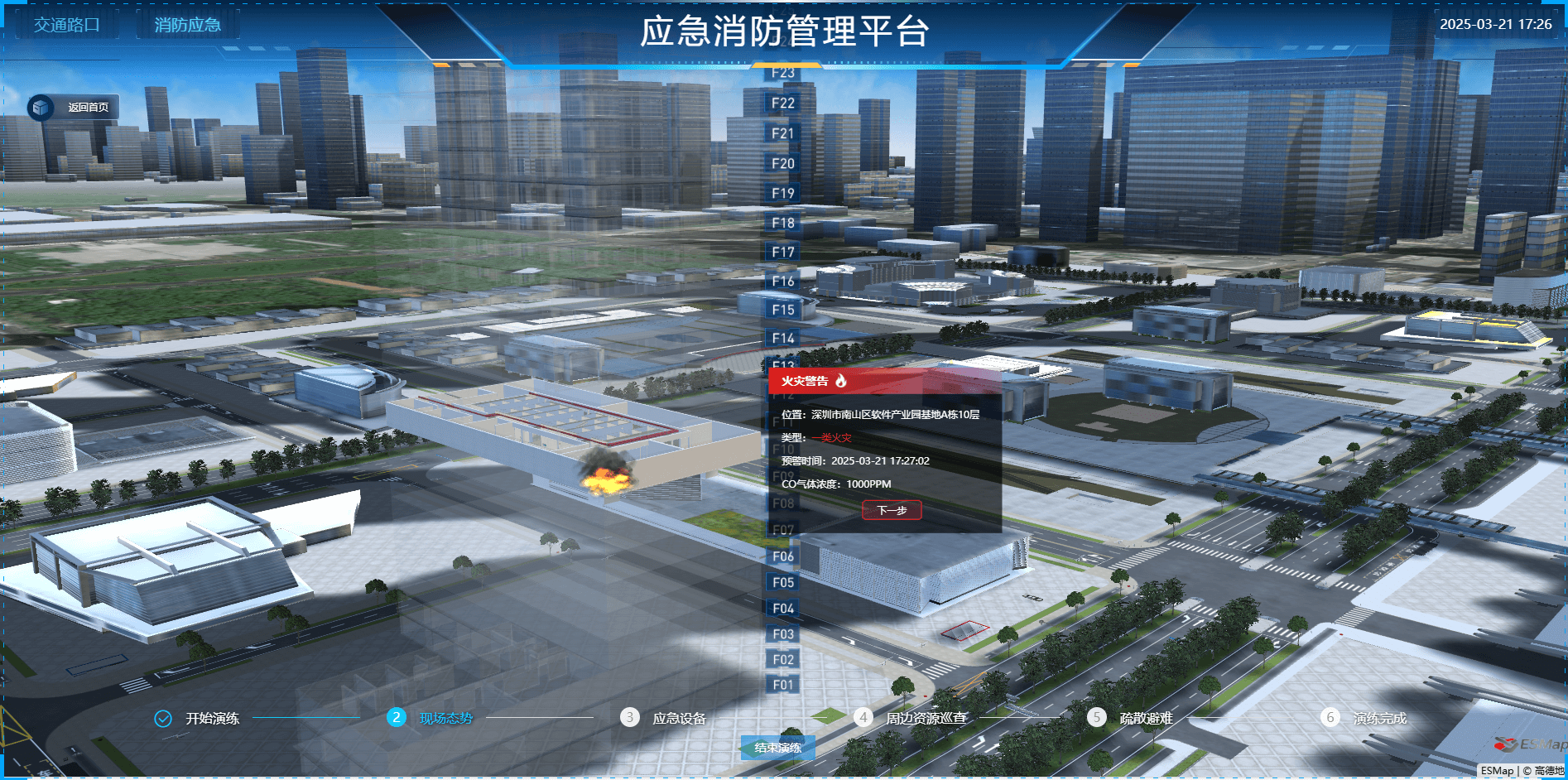 依托数字孪生与仿真技术,ESMap 智慧消防解决方案为应急决策提供科学依据:
