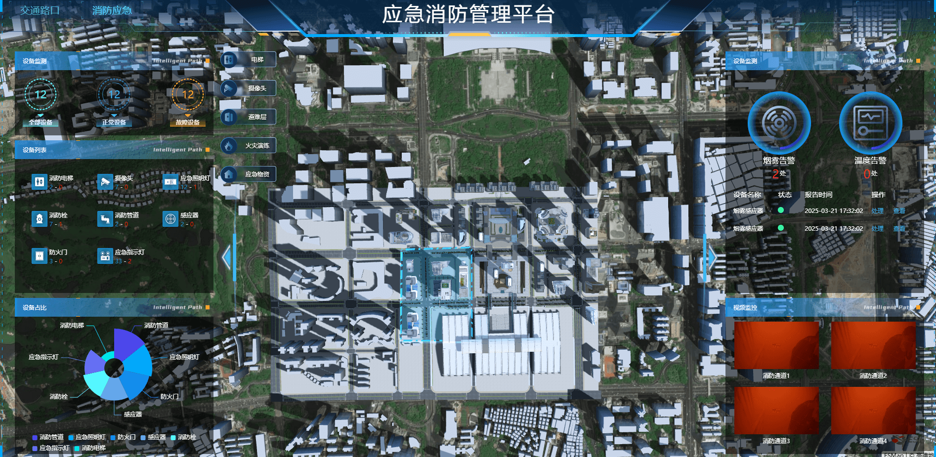 在城市化进程加速与公共安全要求不断提升的时代背景下,传统消防管理模式面临人工巡检覆盖不足、报警系统联动性差、应急响应效率低等诸多挑战。为助力各行业实现消防安全管理的智能化升级,ESMap 依托数字孪生与物联网技术深度融合,打造ESMap 智慧消防解决方案,构建 "监测 - 预警 - 处置 - 管理" 的全链路消防管理体系,为消防站和企业内部消防管理人员提供全面、高效、智能化的管理工具。